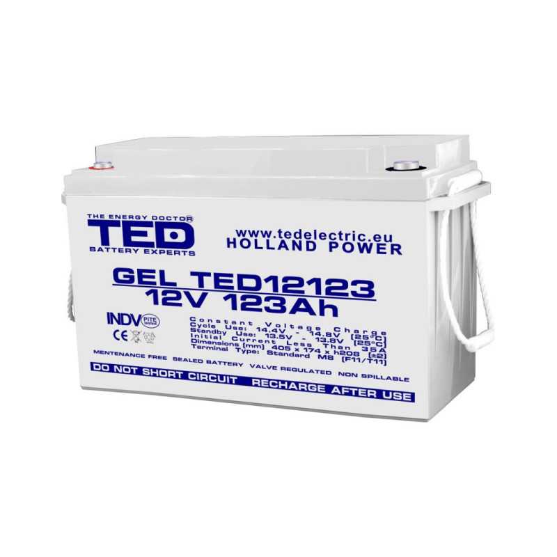 Acumulator 12V GEL Deep Cycle Solar, Dimensiuni 405 x 173 x 220 mm, Baterie 12V 123Ah M8, TED Electric TED003508