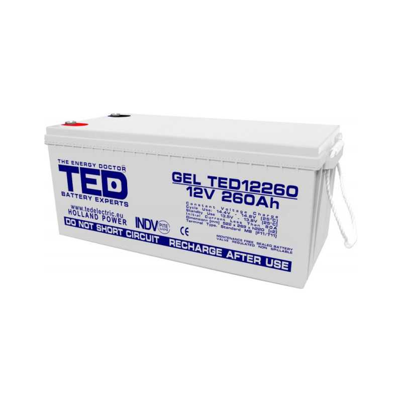 Acumulator 12V GEL Deep Cycle Solar, Dimensiuni 520 x 268 x 220 mm, Baterie 12V 260Ah M8, TED Electric TED003539