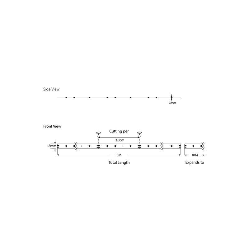 Specificații Banda LED dimabila 12V PRO, 14.4W/ml, 95lm/W, 3000K lumina calda, SMD 2835, 180LED/ml, latime 8mm, IP20 (rola 5m), Eurolamp