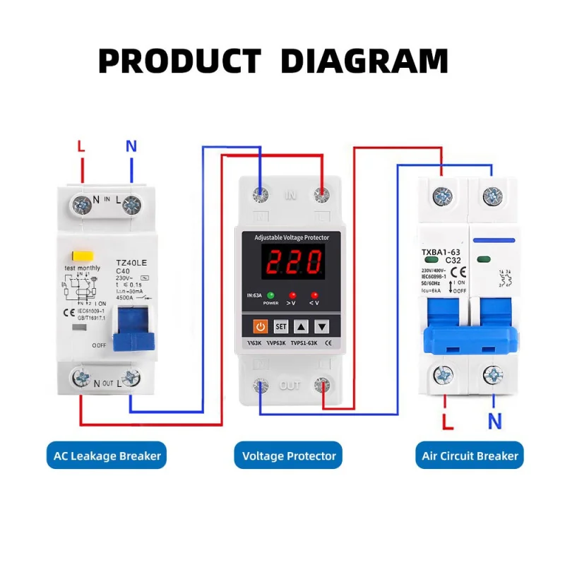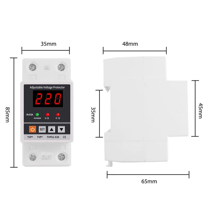 Specificații Releu digital monofazat pentru protectie la supratensiune si subtensiune, 230V, 63A, TEKSA