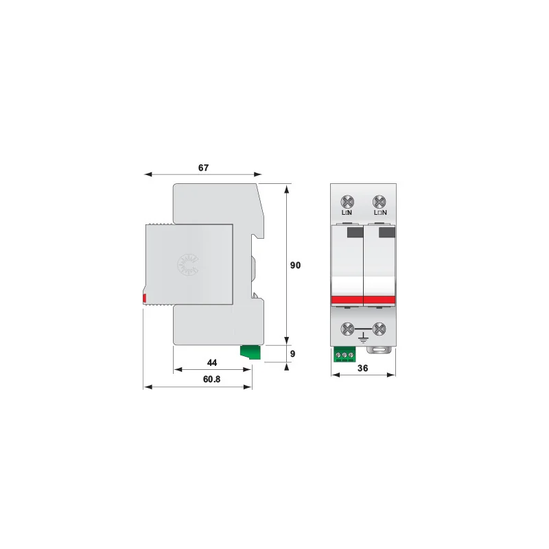 Descriere Descarcator supratensiune,T2, 255V, 40kA, 2+0, ETI