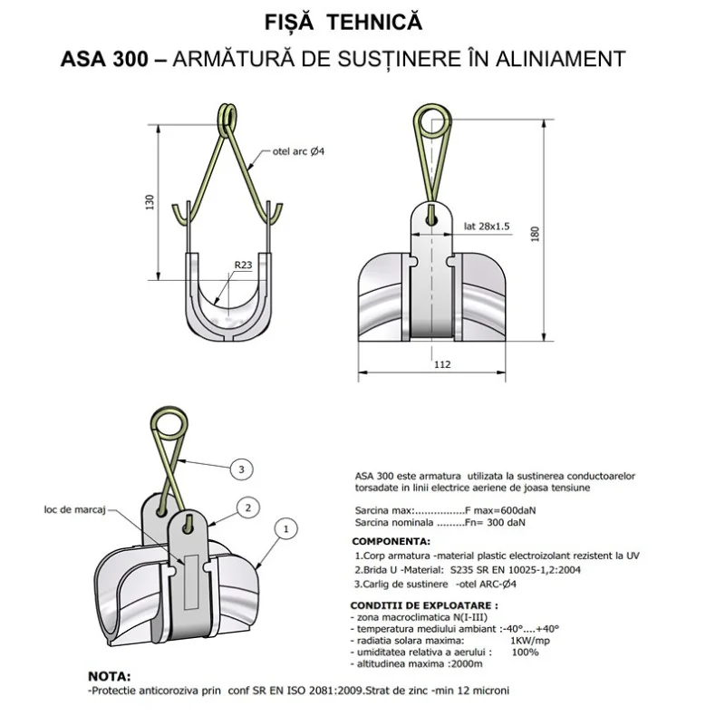 ASA 300 – Armatură susținere în aliniament – Susține cabluri torsadate cu secțiunea de 16÷95 mm².