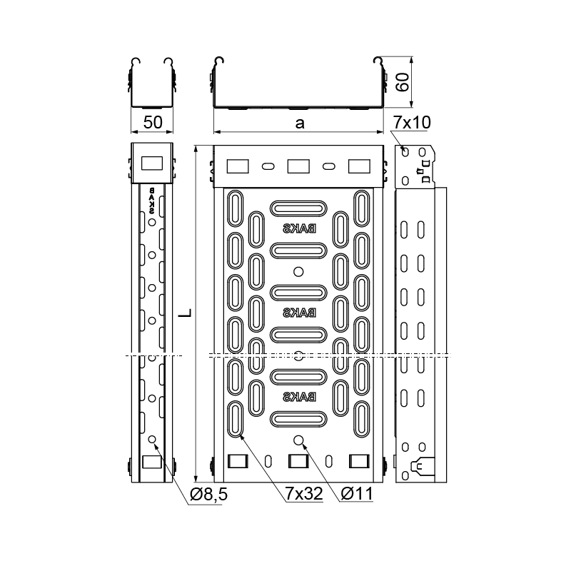 Descriere Jgheab pentru cabluri galvanizat CLICK-ON KFL 200x60x3000 0.7mm E90, BAKS